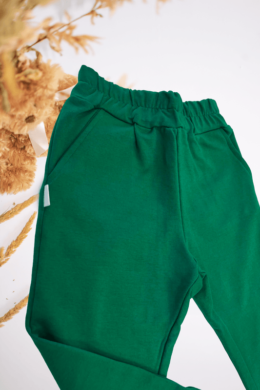 Tamsia žalios spalvos kelnės vaikams | Su pūkeliu