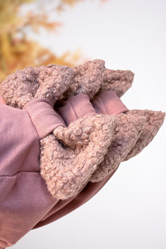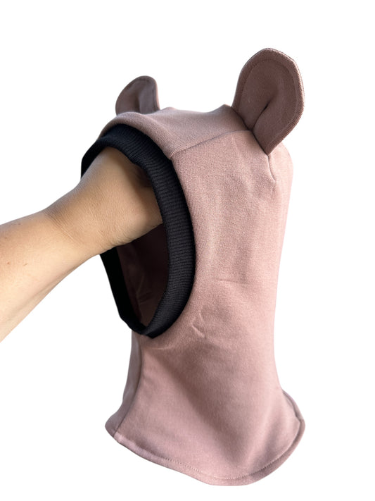Pelenų rožinės spalvos vaikiškas rudeninis šalmukas su kaspinu "Teddy"