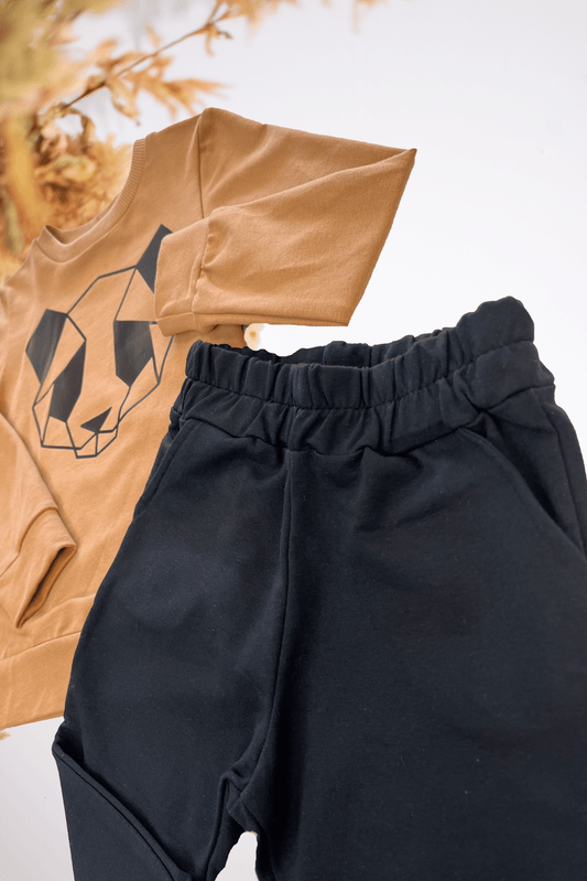 Vaikiškas kreminės spalvos kostiumėlis | Bomberis + kelnės “Panda”