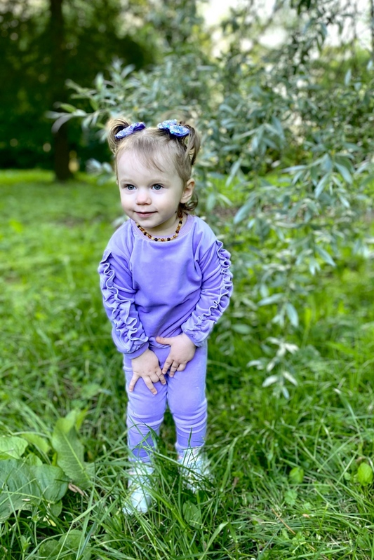 Veliūrinis vaikiškas kostiumėlis “Alyvinė svaja”