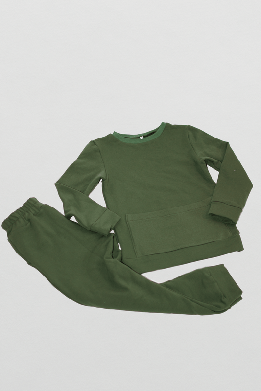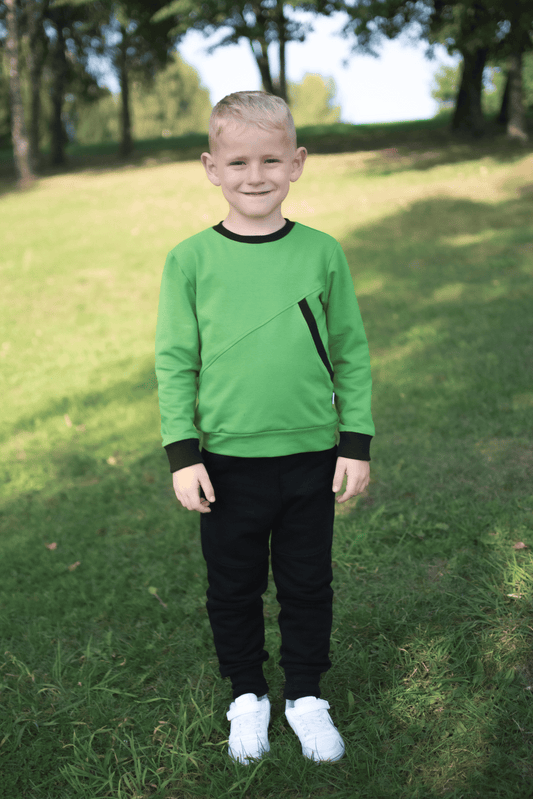 Žalios + juodos spalvos vaikiškas kostiumėlis “Vaikystė"