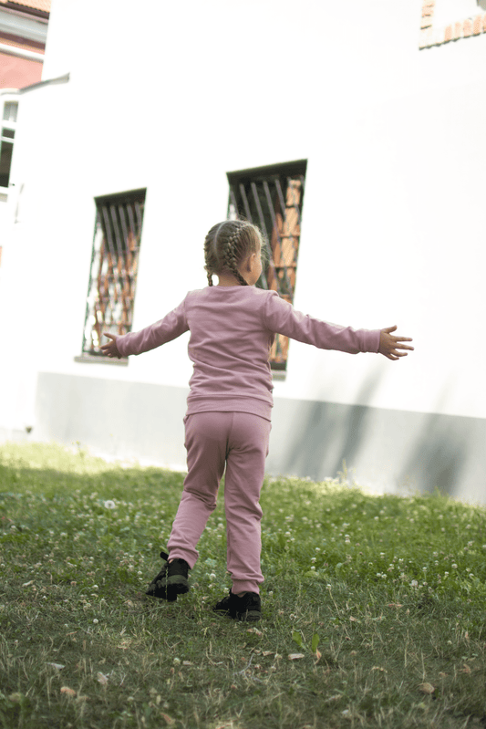 Rausvos spalvos vaikiškas kostiumėlis “Šaltiems vakarams"