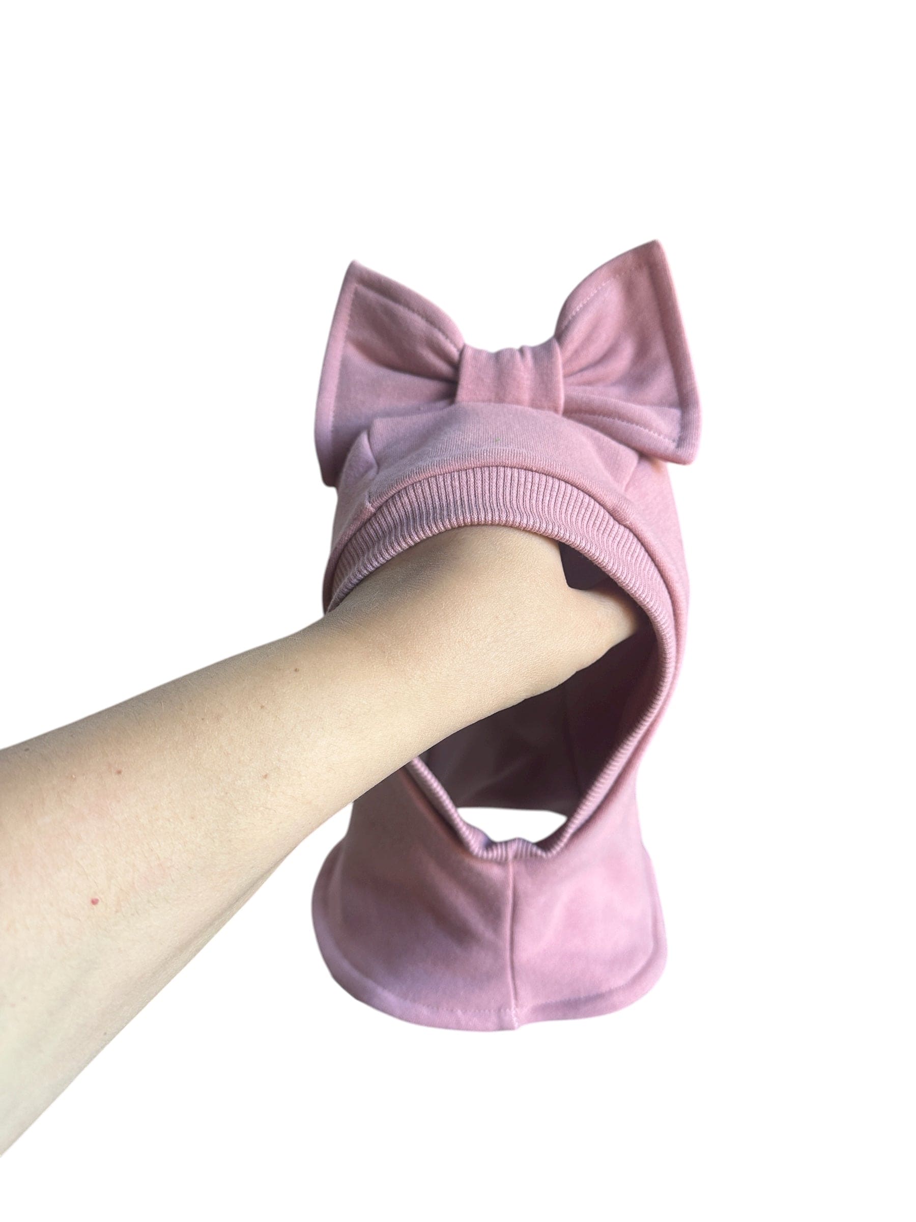 Pelenų rožinės spalvos vaikiškas rudeninis šalmukas su kaspinu