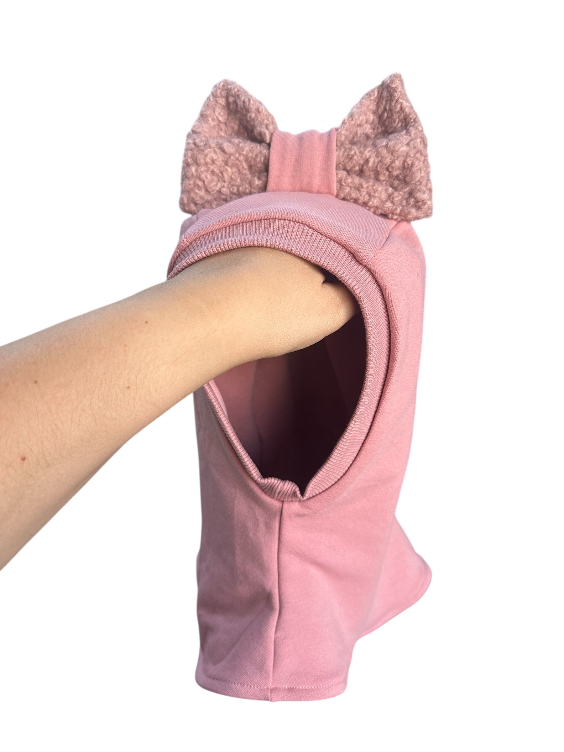 Pelenų rožinės spalvos vaikiškas rudeninis šalmukas su kaspinu "Teddy"