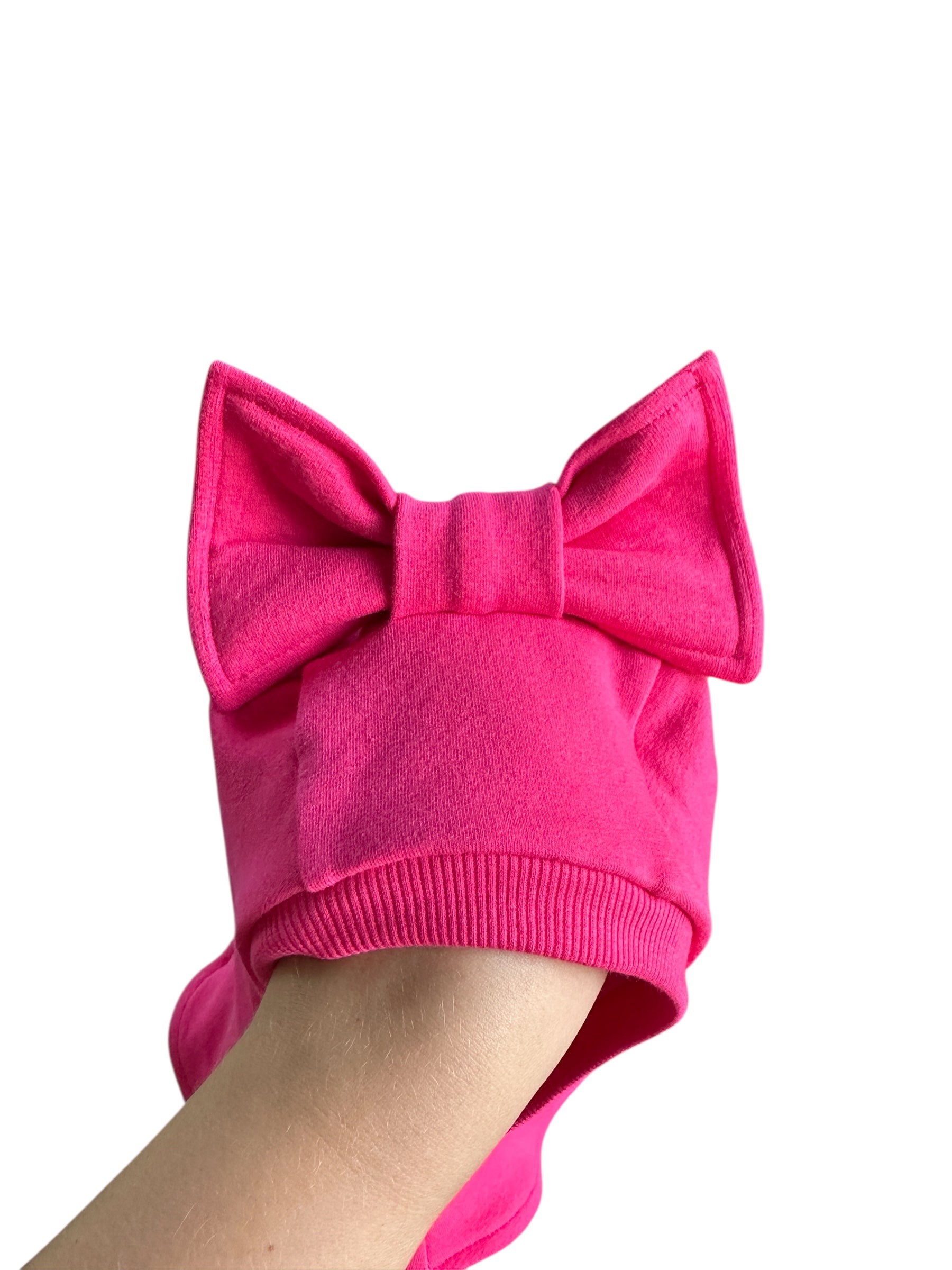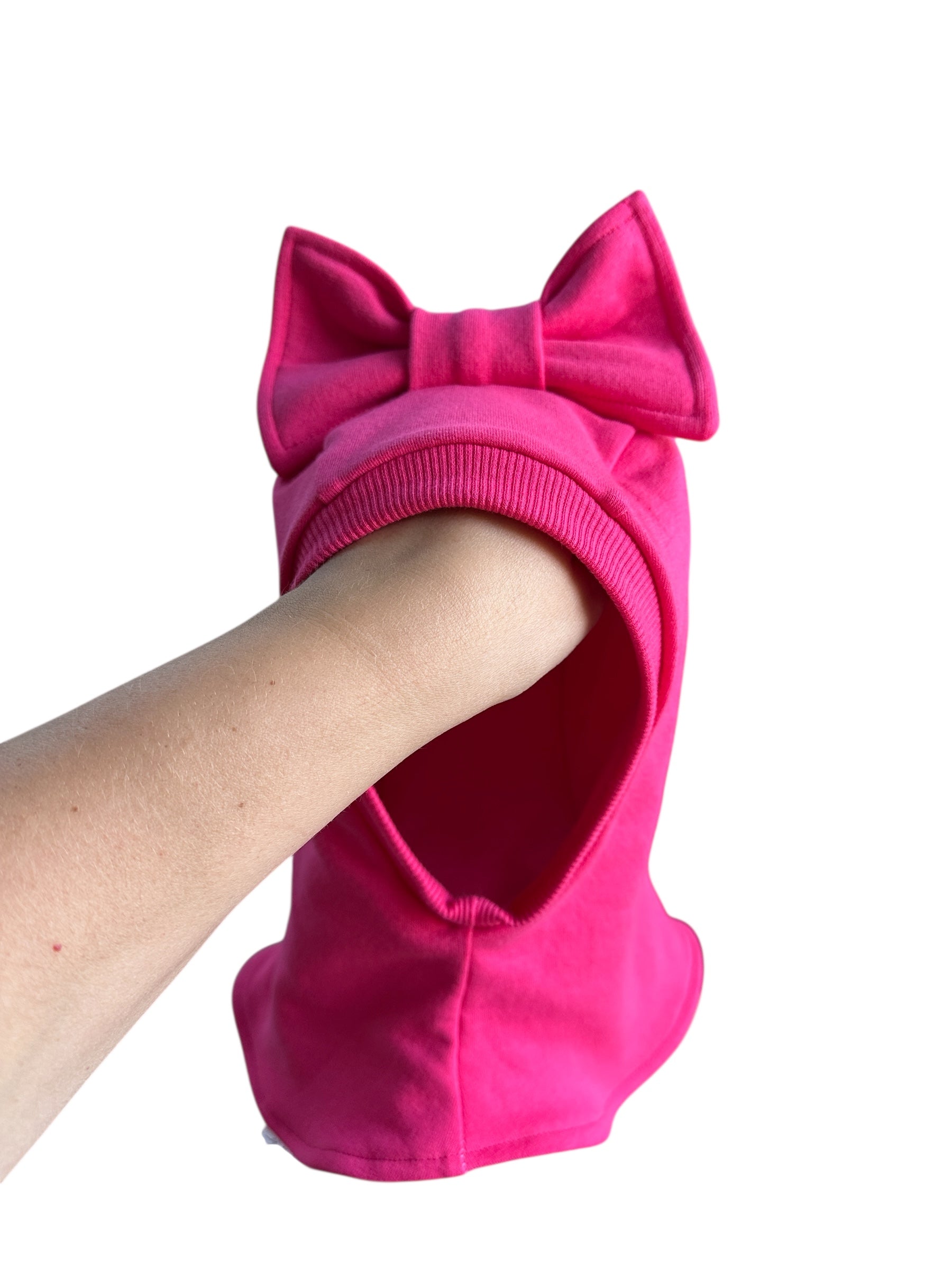 Ryškiai rožinis vaikiškas rudeninis šalmukas su kaspinu