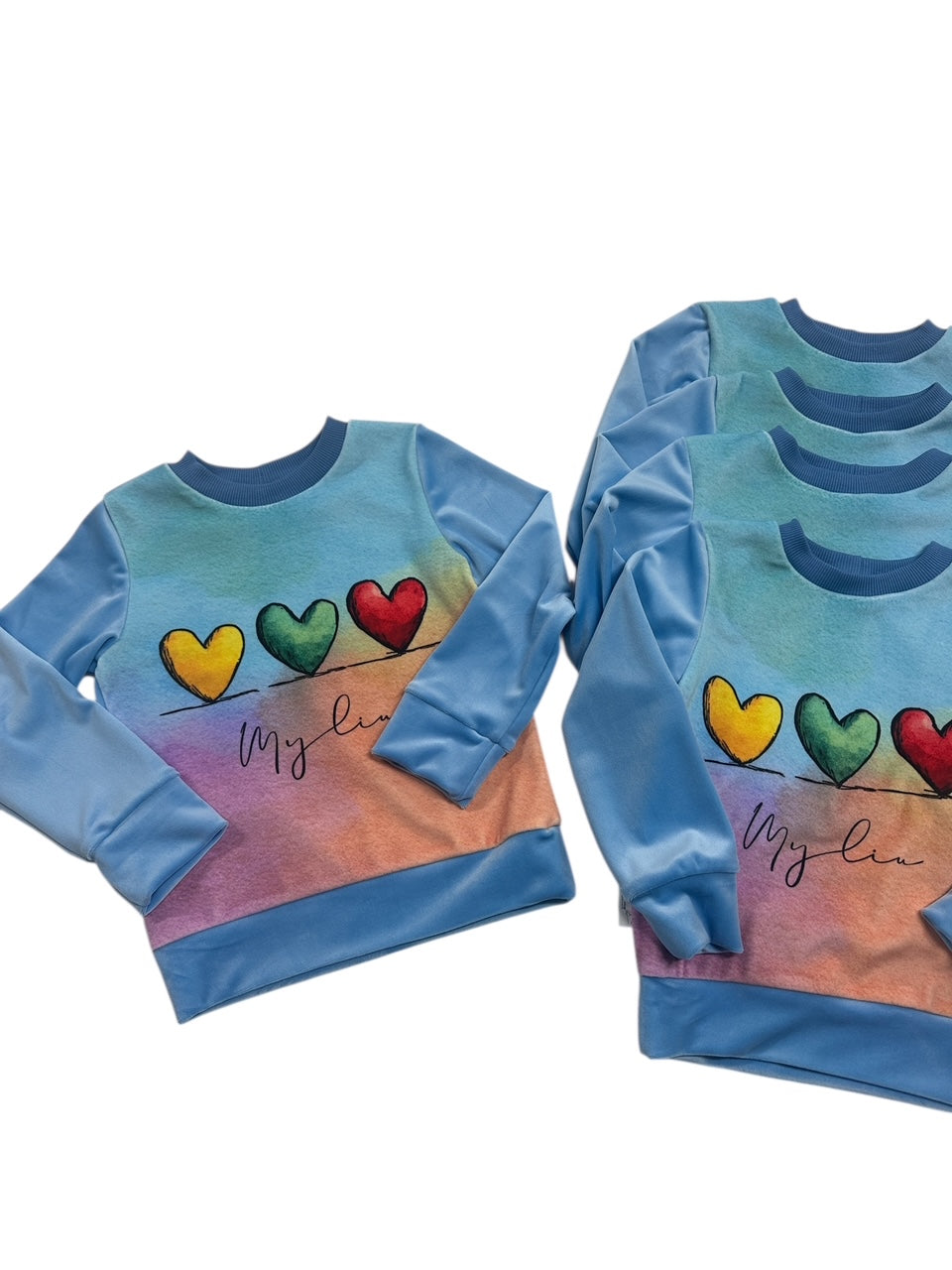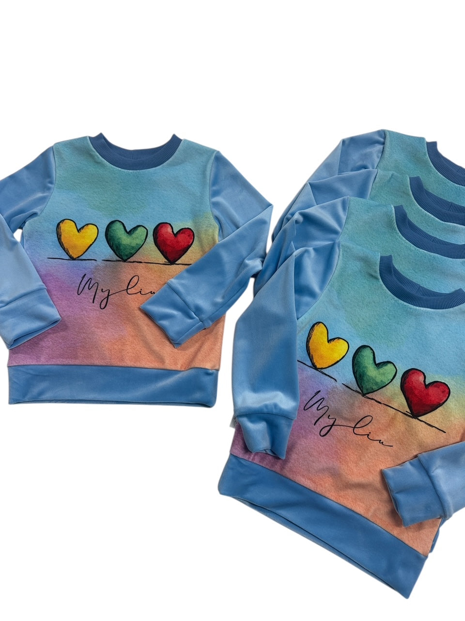 Mūsų nauji vaikiški soft veliūro džemperiai sukurti taip, kad juos vaikai norėtų nešioti kasdien. Medžiaga ypatingai švelni, glotni ir maloni odai, o spalvotas priekis su trispalvės spalvų širdelėmis ir užrašu „Myliu“ suteikia drabužiui išskirtinį, žaismingą ir jaukų lietuvišką akcentą.